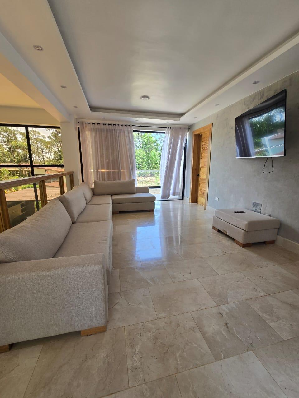 Ubicada en el exclusivo proyecto Alterra Village en Jarabacoa, esta impresionante villa combina diseño contemporáneo con la tranquilidad de la naturaleza. Su arquitectura moderna se distingue por líneas limpias, amplios ventanales y una elegante terraza con baranda de vidrio que ofrece vistas espectaculares a las montañas y al verdor circundante. En su interior, cuenta con espacios amplios y luminosos, diseñados para el confort y la convivencia. En el exterior, la propiedad ofrece un entorno ideal para el entretenimiento y el descanso, con piscina privada, gazebo y un jardín cuidadosamente diseñado con piedras decorativas y plantas tropicales. Además, dispone de estacionamiento para hasta 7 vehículos, brindando comodidad y seguridad para residentes y visitantes. Perfecta para quienes buscan un refugio privado en la montaña sin renunciar al confort y al estilo, esta villa es una oportunidad única de vivir o vacacionar en uno de los destinos más codiciados de República Dominicana.